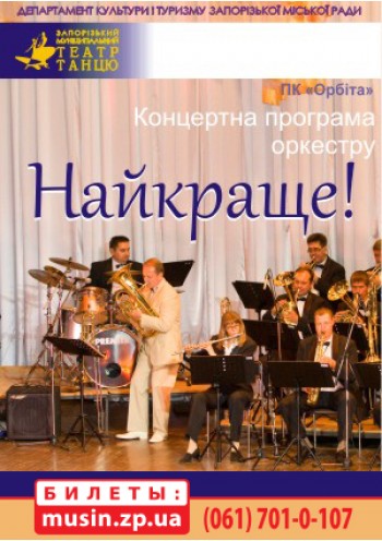 Найкраще! Таку назву має прем'єра концертної програми духового оркестру Запорізького муніципального театру танцю, яка відбудеться 17.11.16 р. о 18.30 в ПК "Орбіта"
